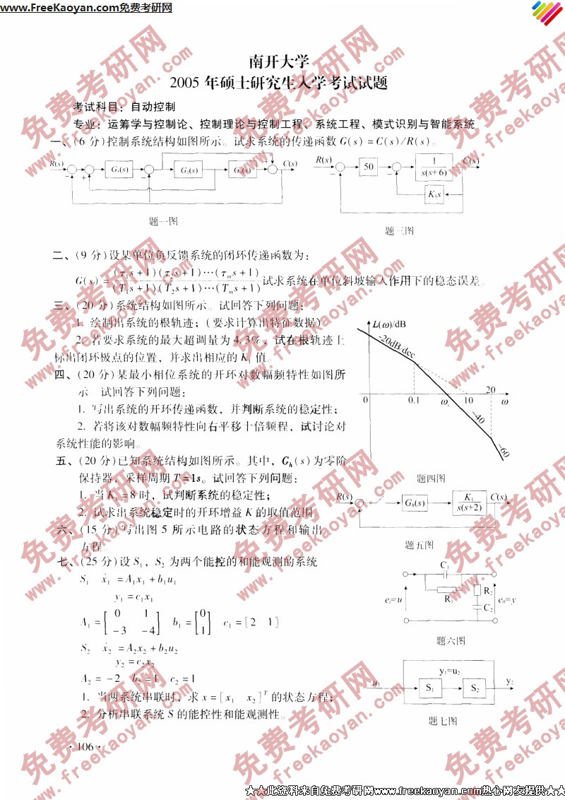 南开大学2005年考研真题-自动控制(运筹学与控制论等专业)