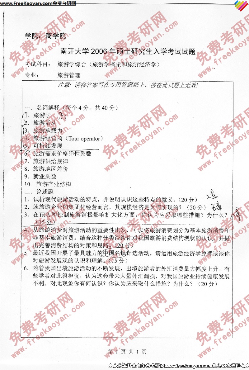 专业课考研经验 本站小编 FreeKaoyan 2018-01-23南开大学2006年考研真题-汉语