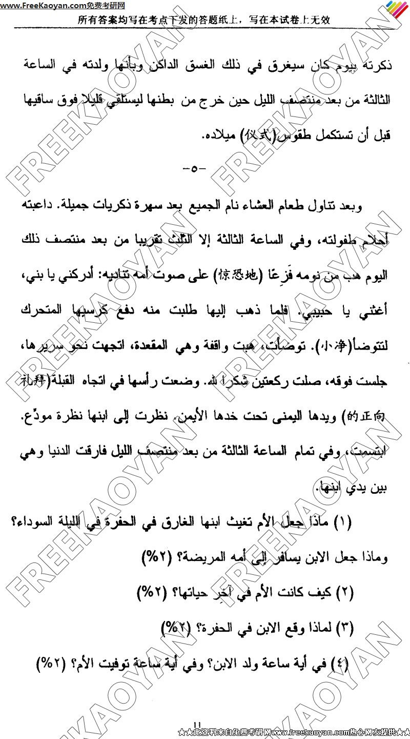 上海外国语大学2005年考研真题-阿拉伯语专业综合考试(11)