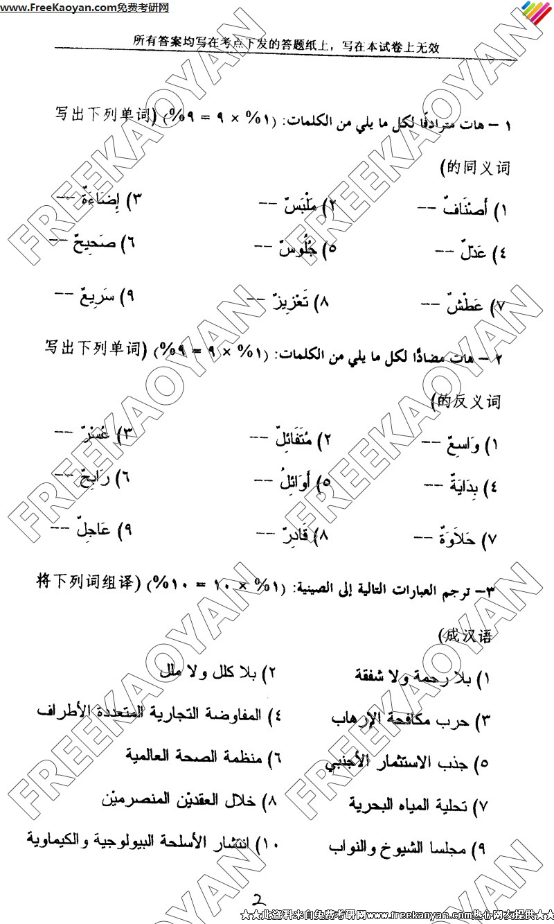 上海外国语大学2005年考研真题-阿拉伯语专业综合考试(2)