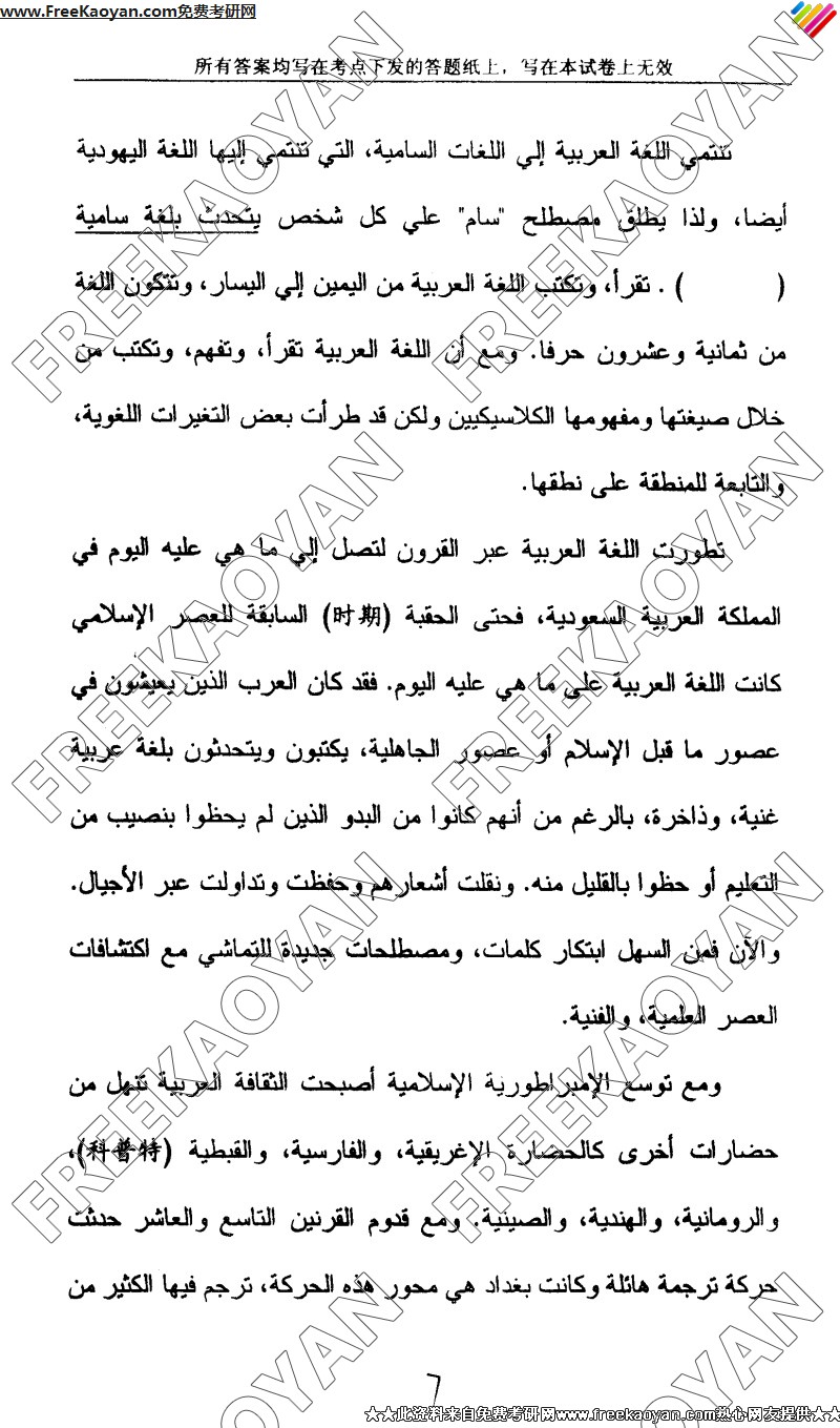 上海外国语大学2005年考研真题-阿拉伯语专业综合考试(7)