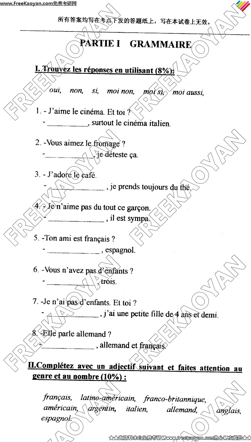 专业课考研经验 本站小编 FreeKaoyan 2018-01-232001 年上海外国语大学英语综合试题答案I Cloze(1)Either (2)than (3) and (4)speak (5) parents (6)each (7)own (8)with (9)Otherwise(10)difference (11) by (12)With (13)masc ...