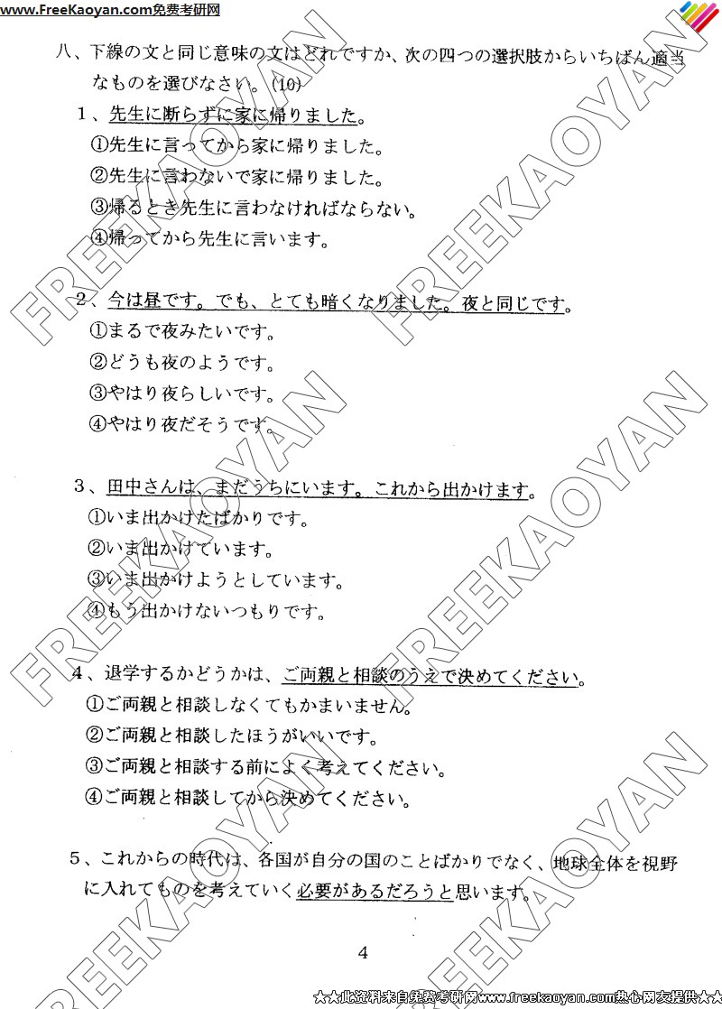 上海外国语大学2005年考研真题-二外日语(4)