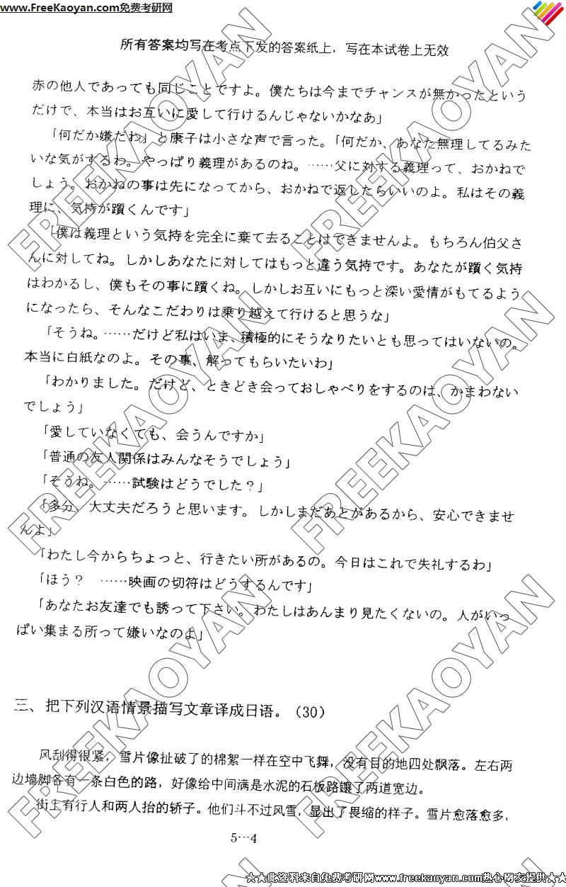 上海外国语大学2005年考研真题-翻译(日语语言文学)(4)