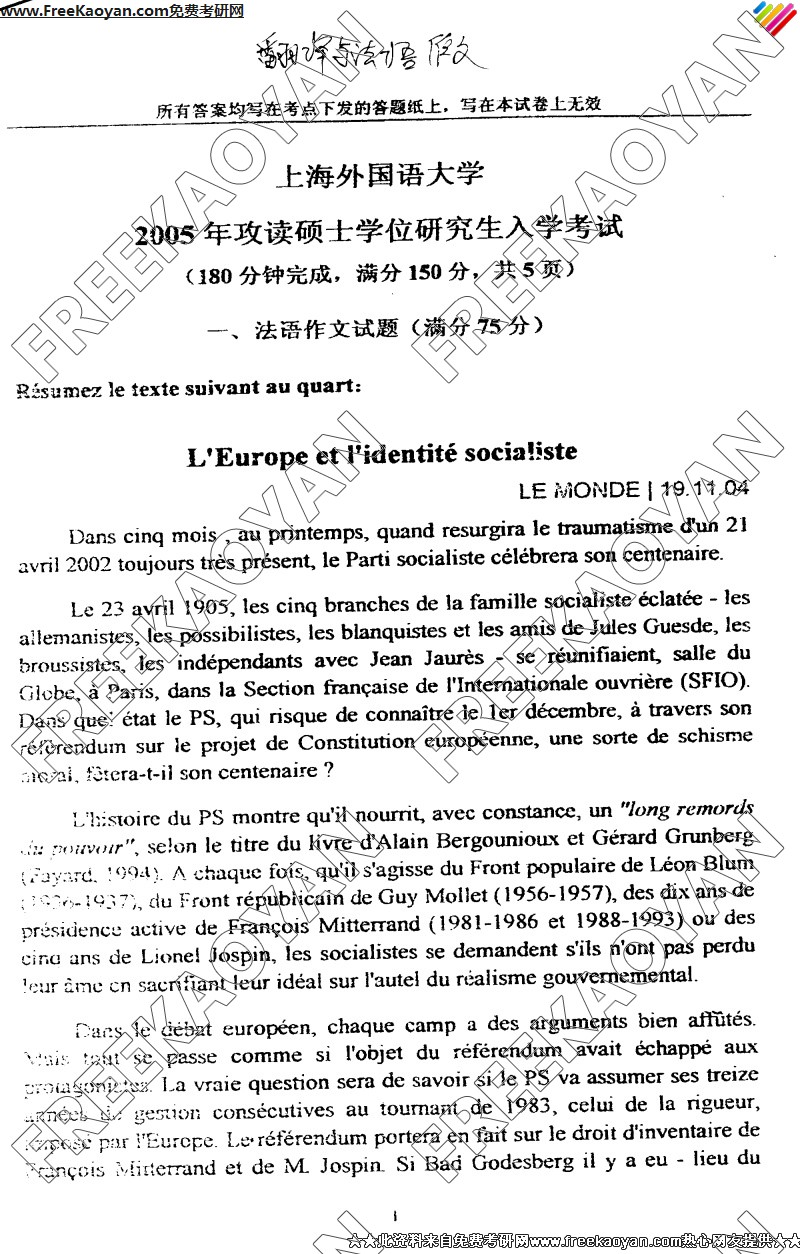 相关话题/考研真题 上海外国语大学 翻译 作文 法语