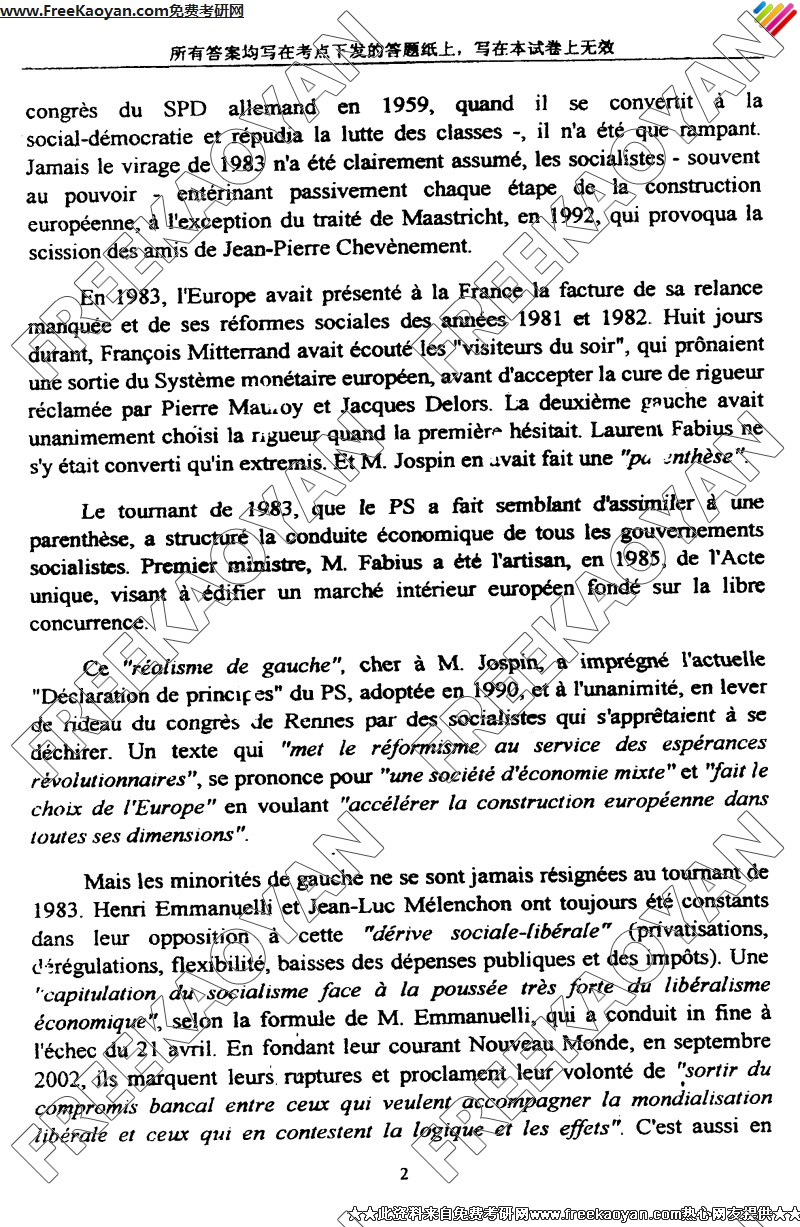 上海外国语大学2005年考研真题-翻译与法语作文(2)