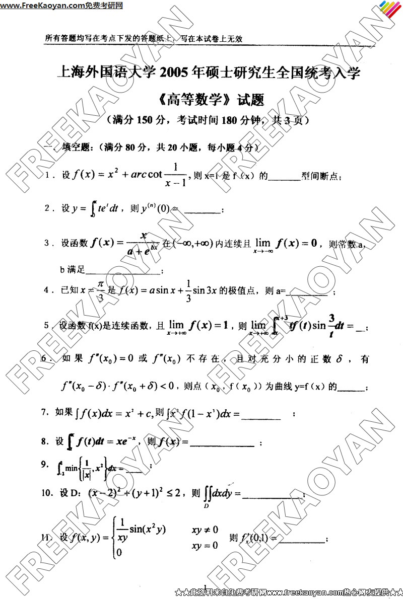 专业课考研经验 本站小编 FreeKaoyan 2018-01-23上海外国语大学2005年考研真题-二外英语