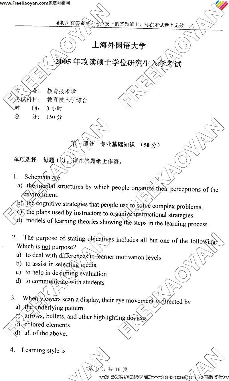 专业课考研经验 本站小编 FreeKaoyan 2018-01-23上海外国语大学2005年考研真题-二外英语