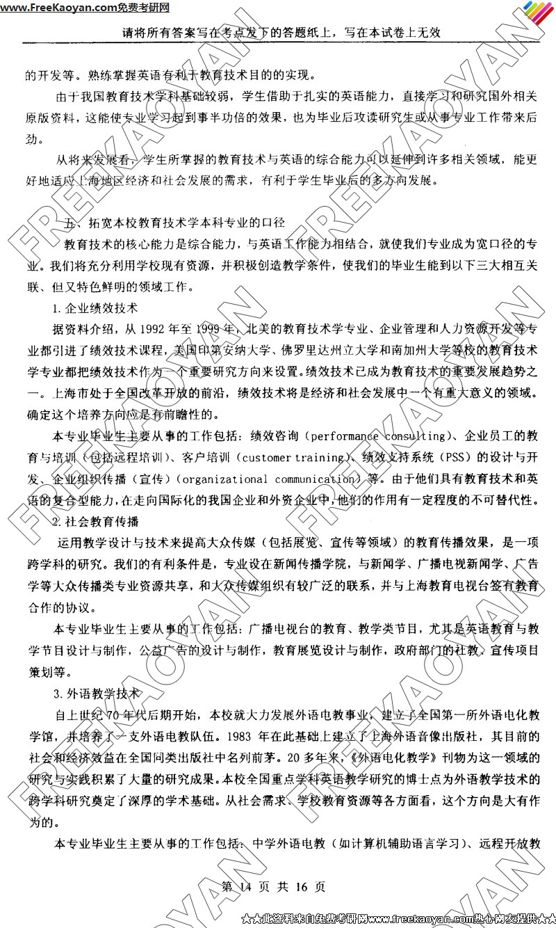 上海外国语大学2005年考研真题-教育技术学综合(14)
