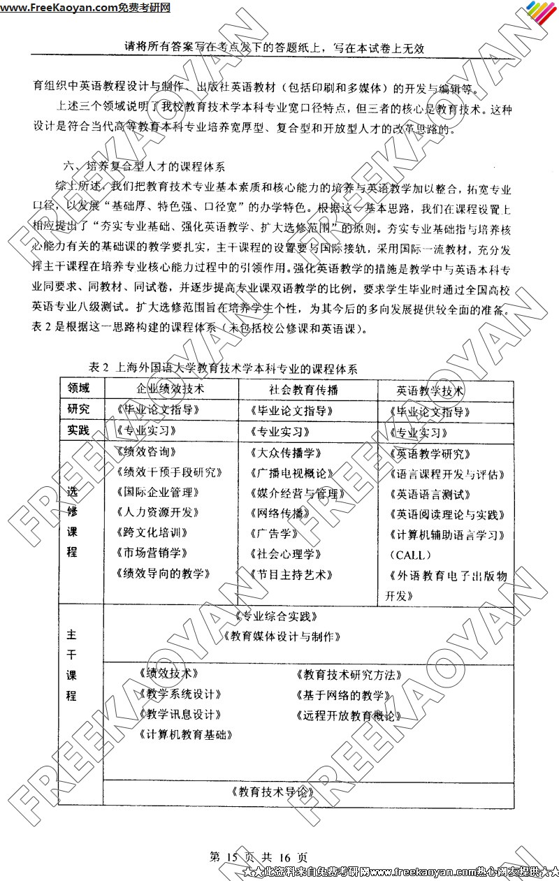 上海外国语大学2005年考研真题-教育技术学综合(15)