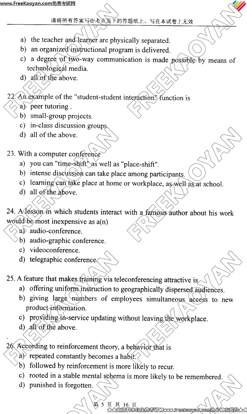 上海外国语大学2005年考研真题-教育技术学综合(5)