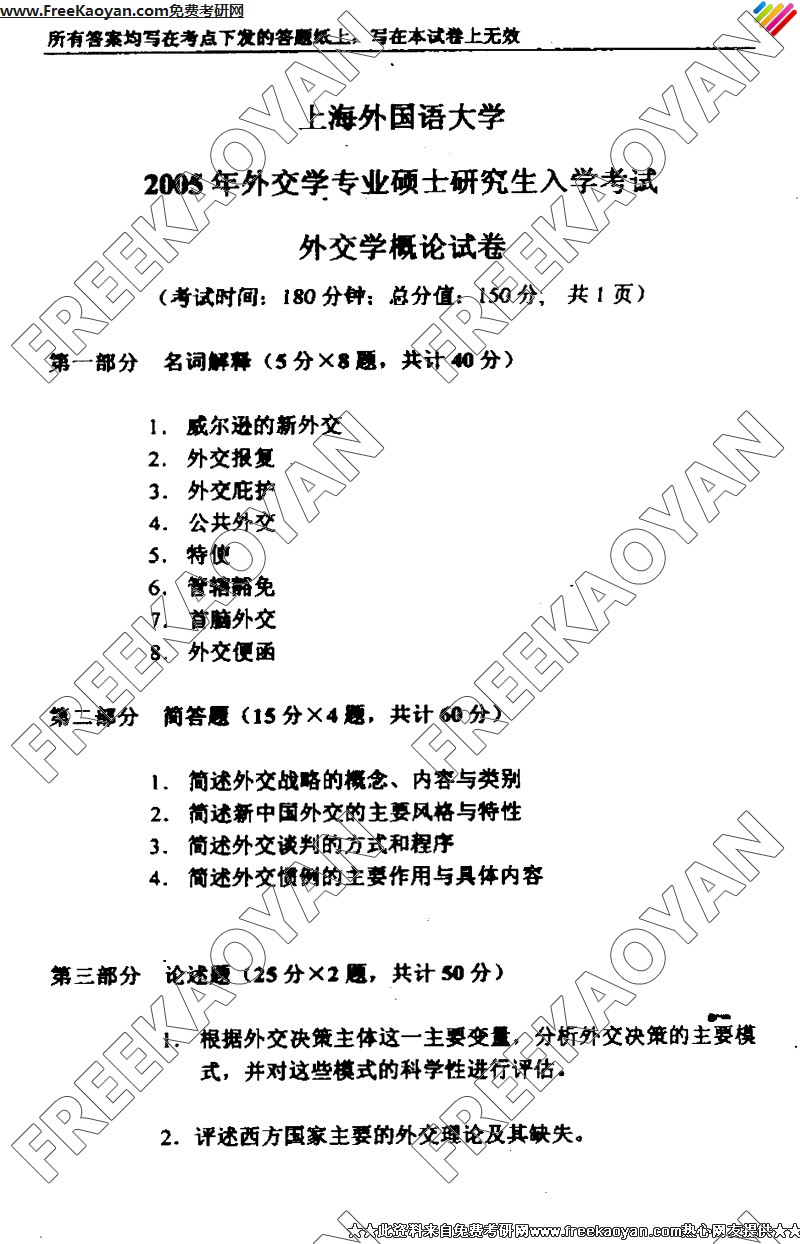 专业课考研经验 本站小编 FreeKaoyan 2018-01-23上海外国语大学2005年考研真题-当代中国外交