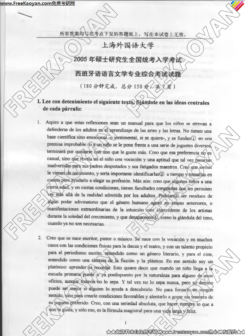 上海外国语大学2005年考研真题-西班牙语言文学专业综合考试