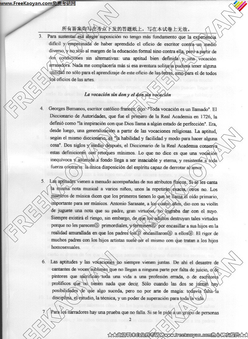 上海外国语大学2005年考研真题-西班牙语言文学专业综合考试(2)