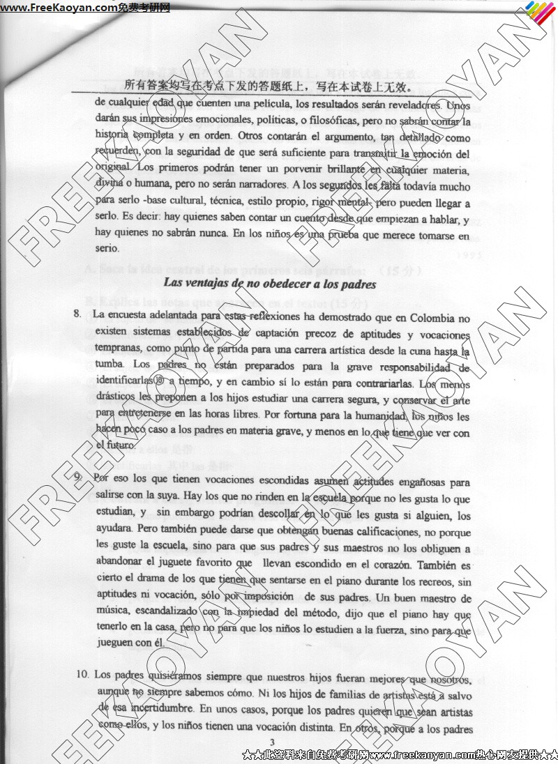 上海外国语大学2005年考研真题-西班牙语言文学专业综合考试(3)