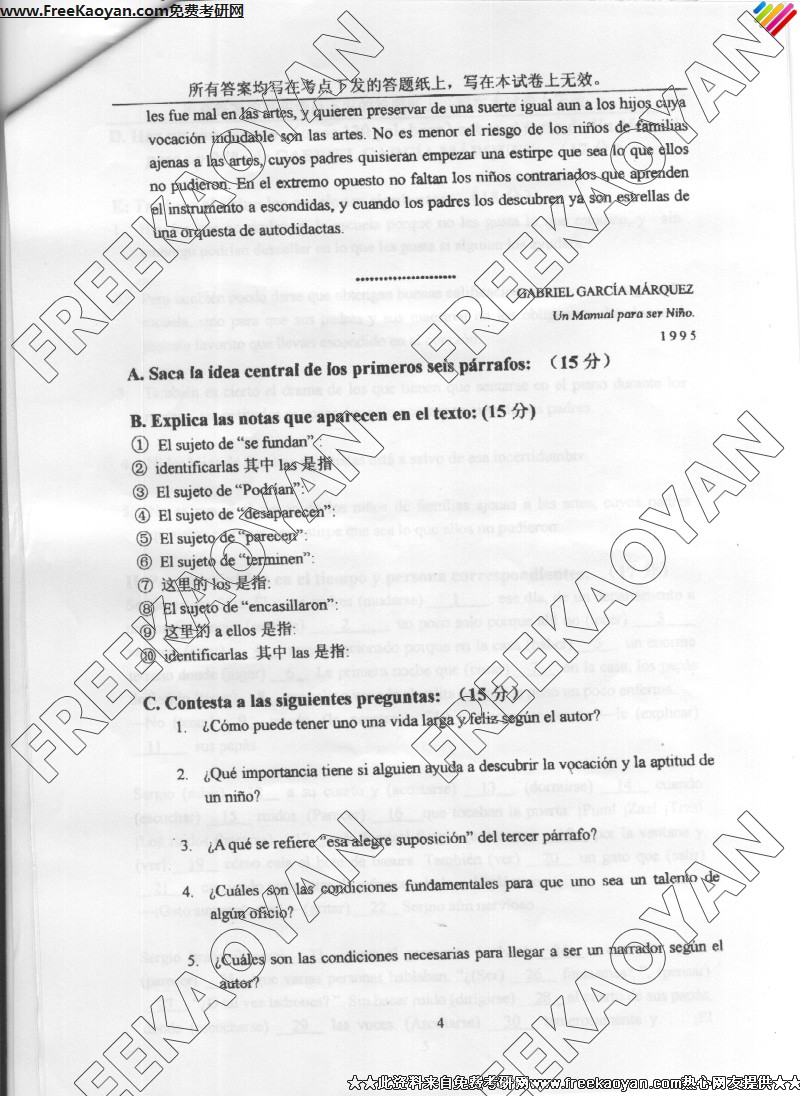上海外国语大学2005年考研真题-西班牙语言文学专业综合考试(4)
