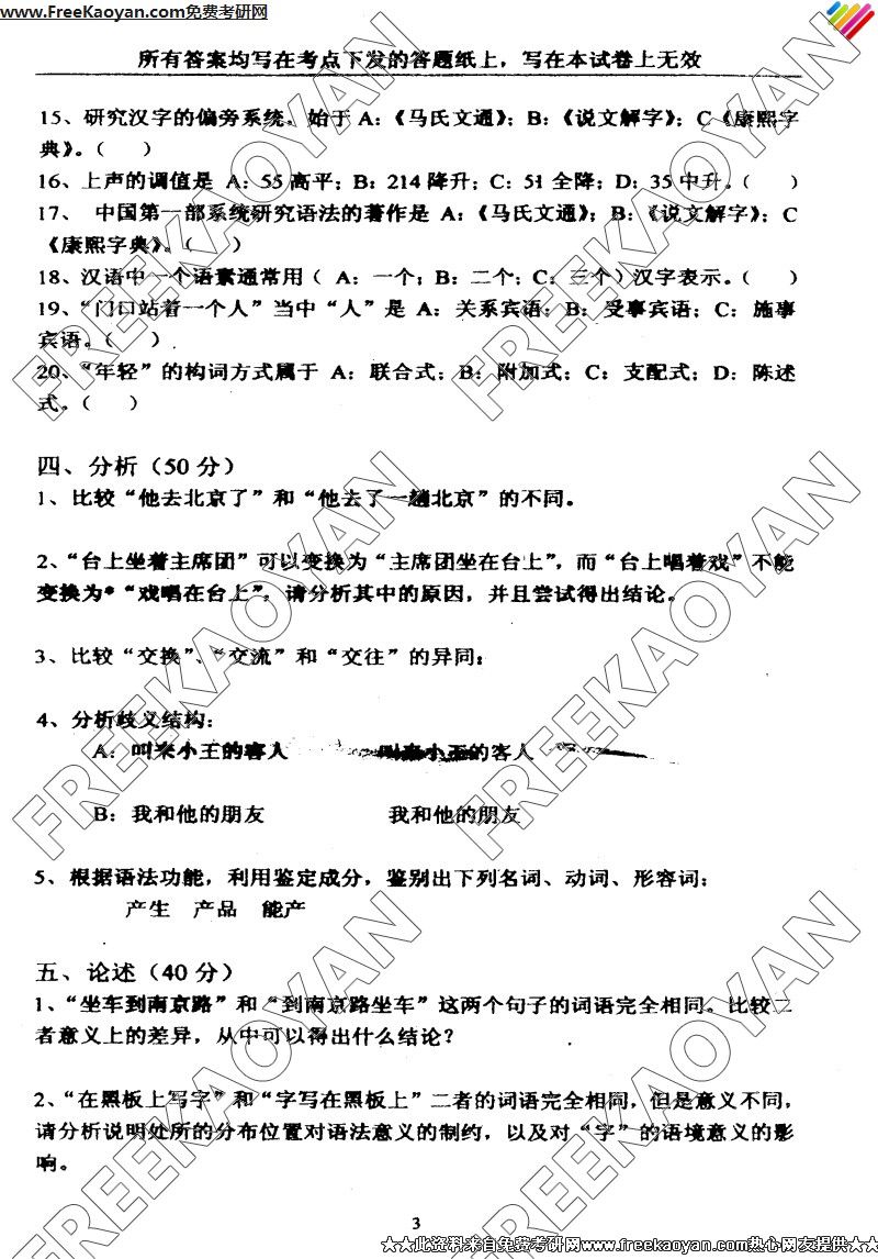 专业课考研经验 本站小编 FreeKaoyan 2018-01-23上海外国语大学2005年考研真题-俄语综合