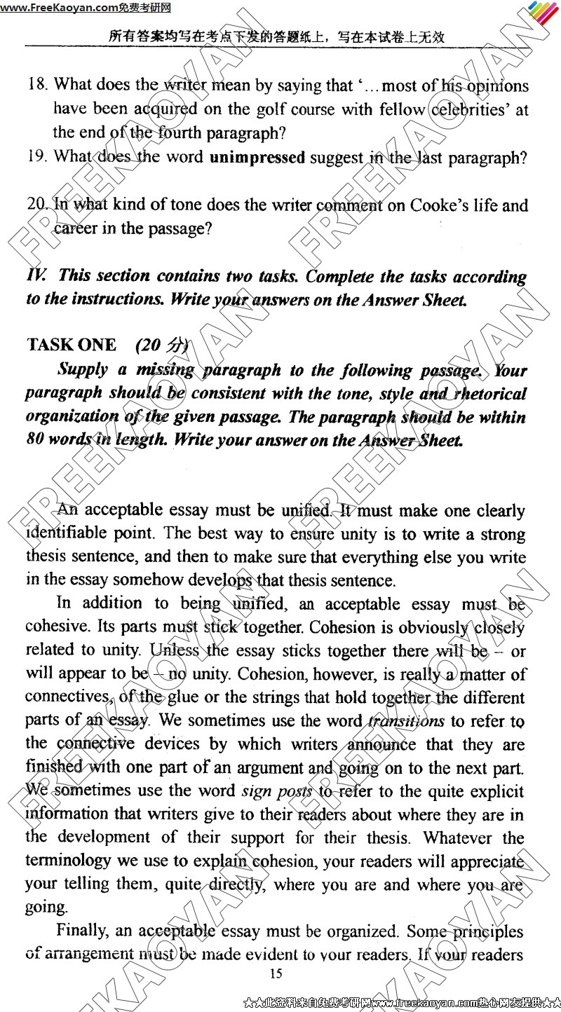 上海外国语大学2005年考研真题-英语综合考试(15)