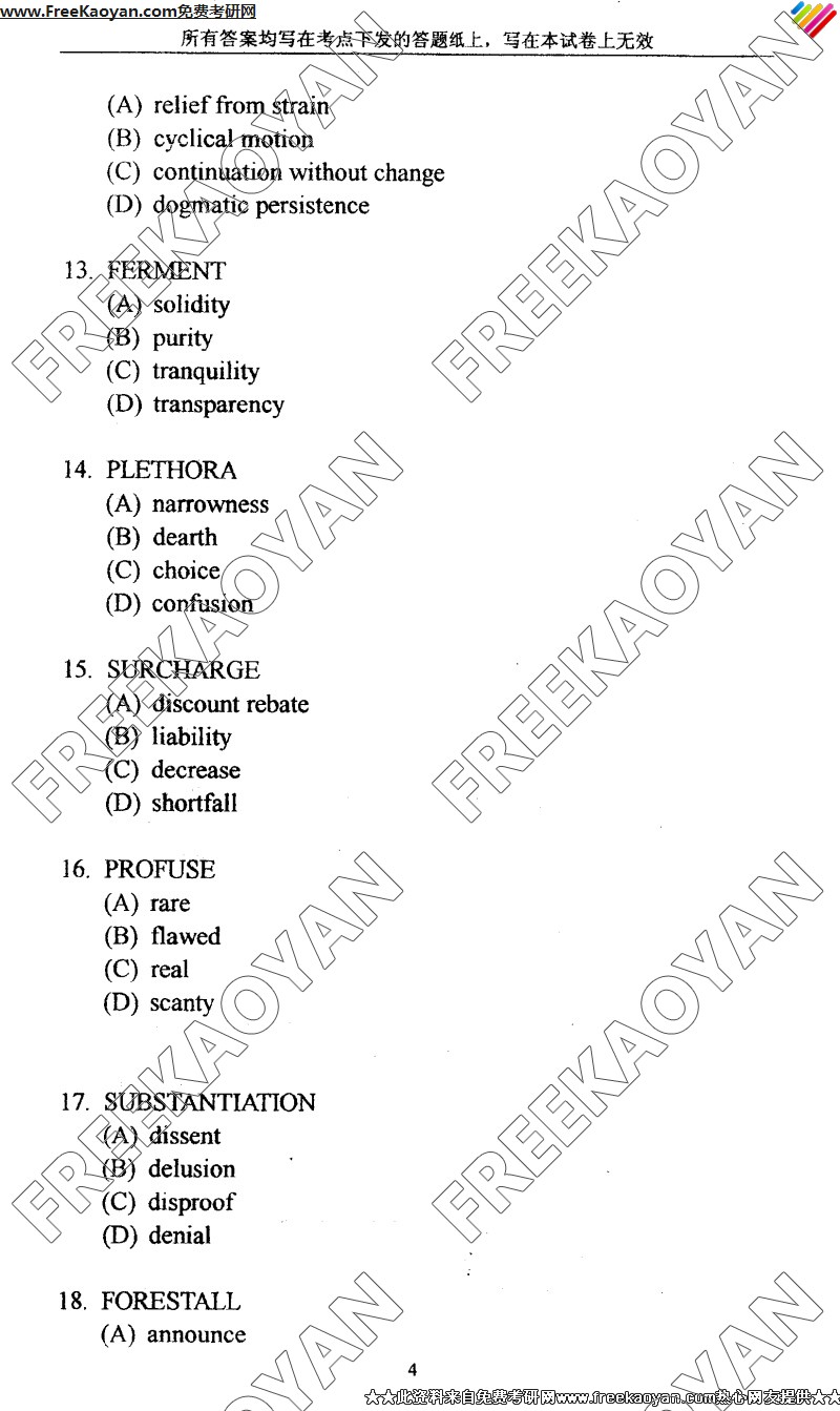 上海外国语大学2005年考研真题-英语综合考试(4)