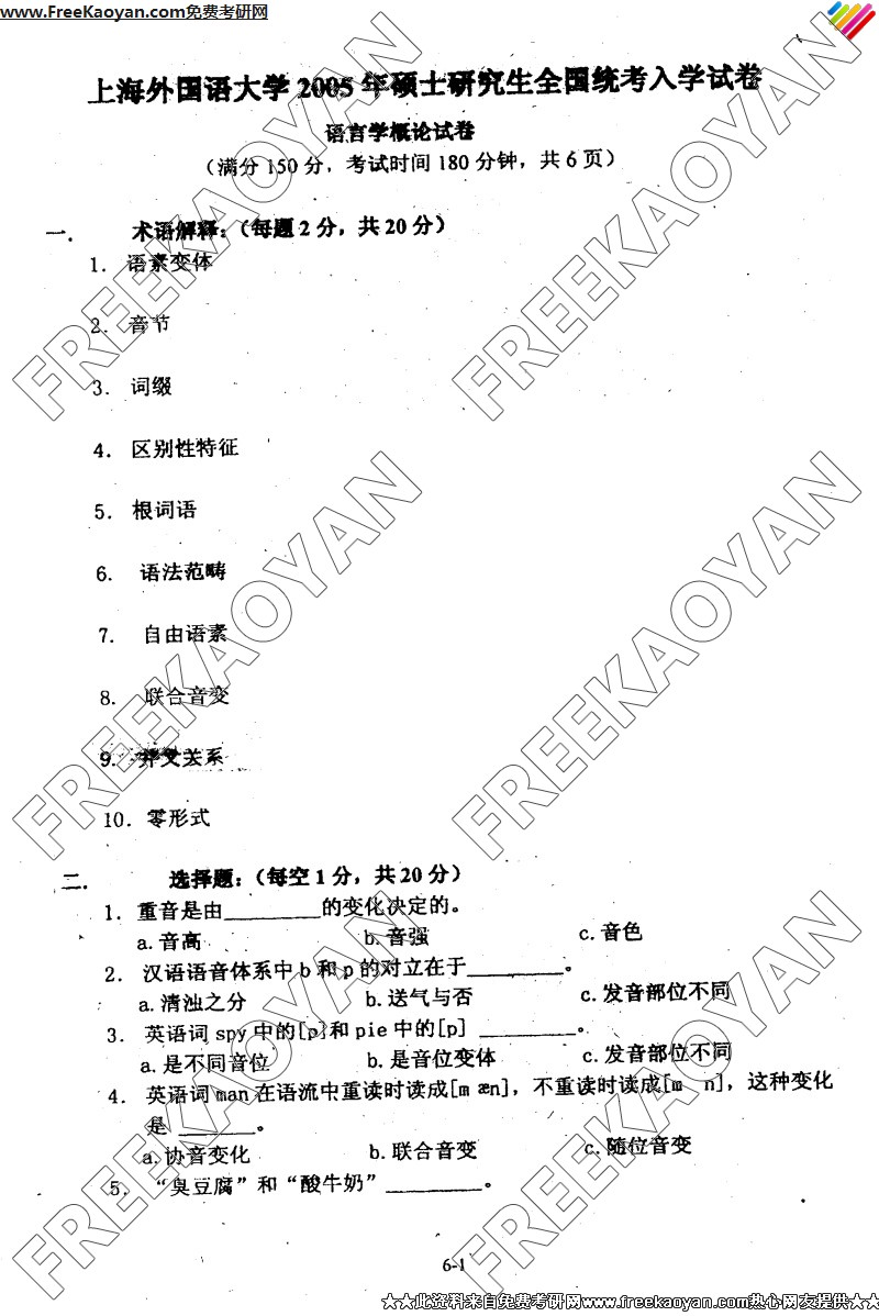 专业课考研经验 本站小编 FreeKaoyan 2018-01-23上海外国语大学2005年考研真题-现代汉语