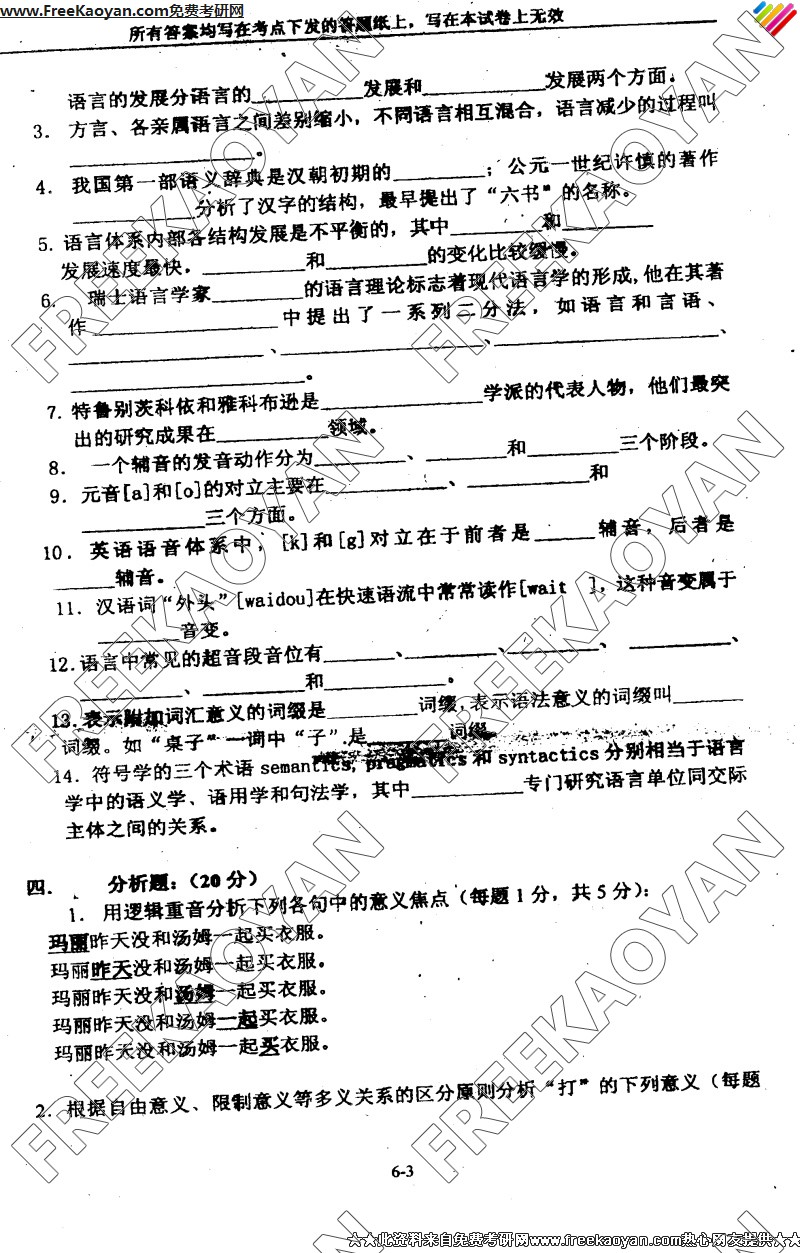 相关话题/考研真题 语言学 上海外国语大学 概论