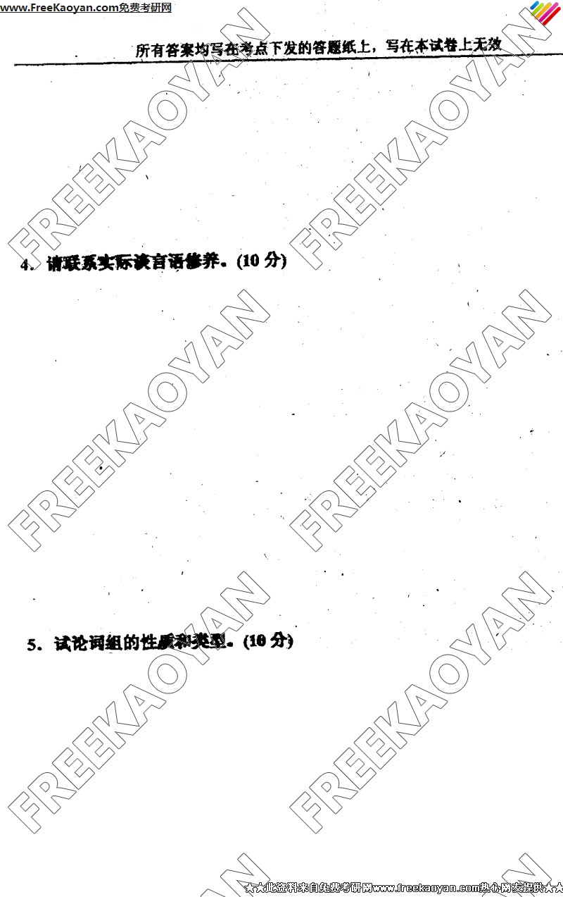 专业课考研经验 本站小编 FreeKaoyan 2018-01-23上海外国语大学2005年考研真题-现代汉语
