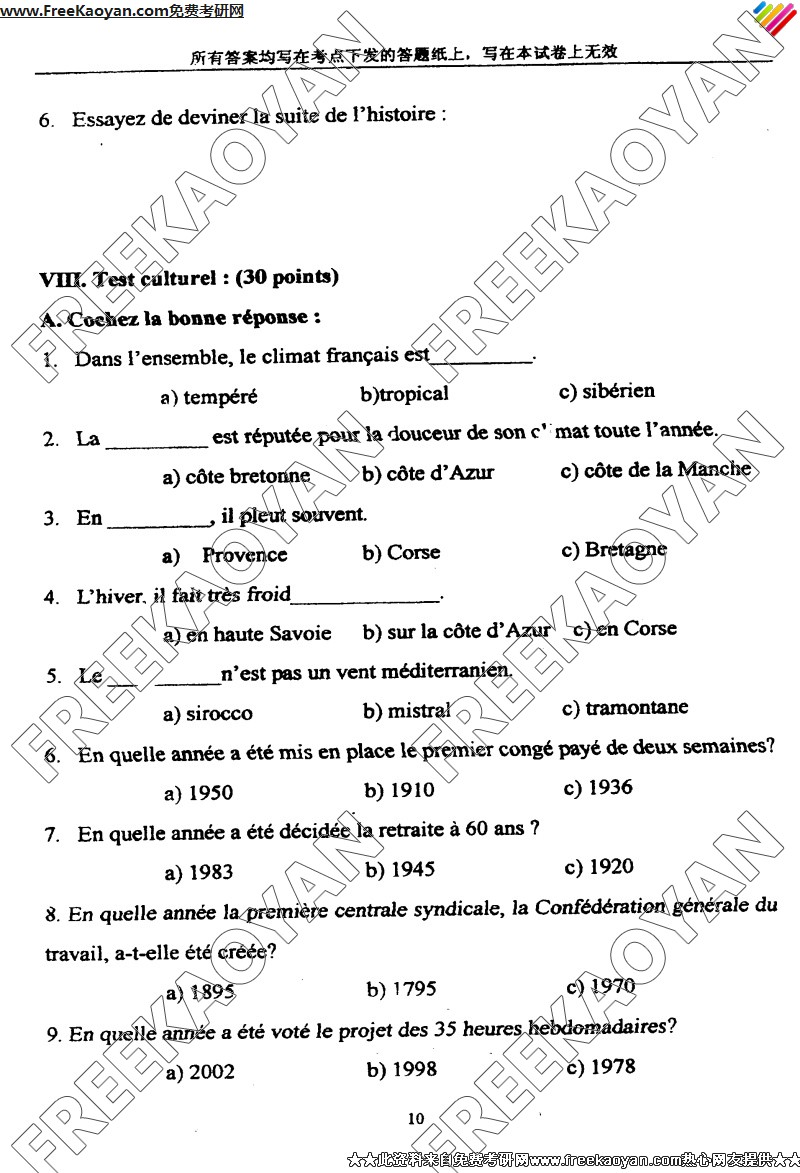 上海外国语大学2005年考研真题-综合考试(法语语言文学)(10)