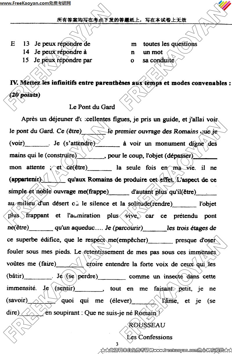 上海外国语大学2005年考研真题-综合考试(法语语言文学)(3)