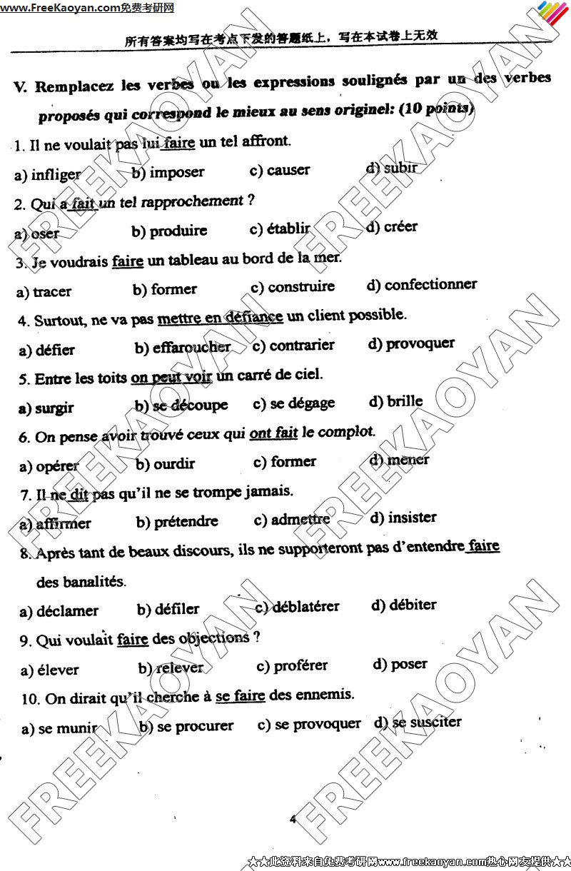 上海外国语大学2005年考研真题-综合考试(法语语言文学)(4)
