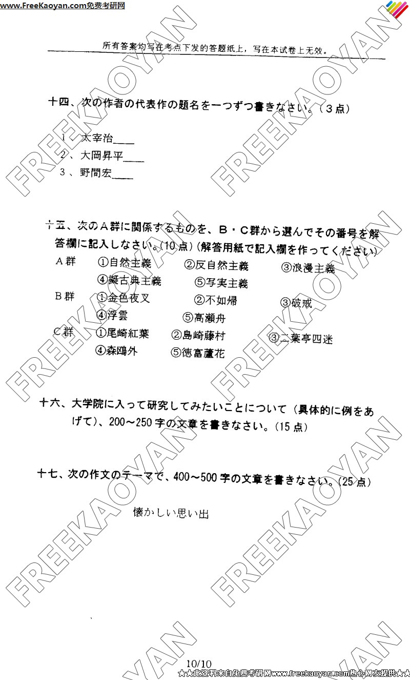 上海外国语大学2005年考研真题-综合考试(日语语言文学)(10)