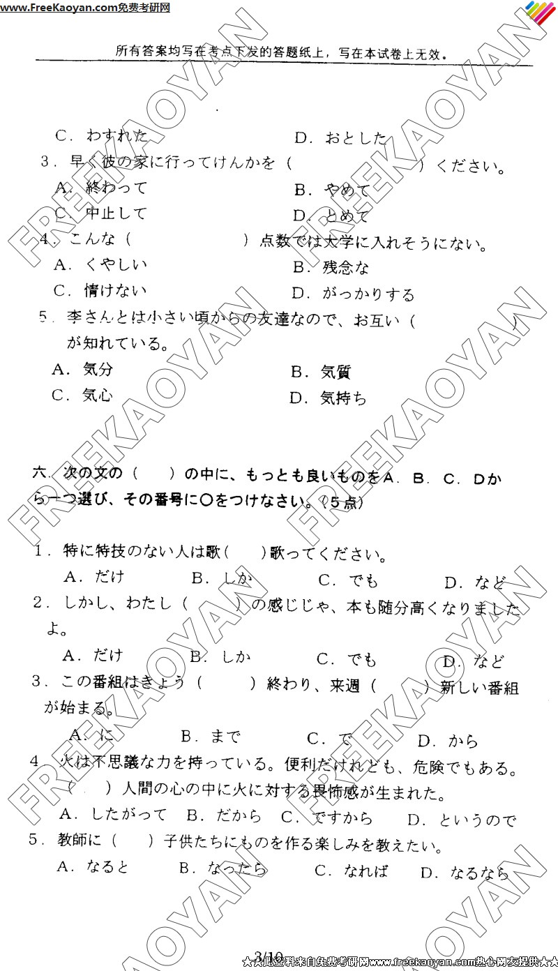 上海外国语大学2005年考研真题-综合考试(日语语言文学)(3)