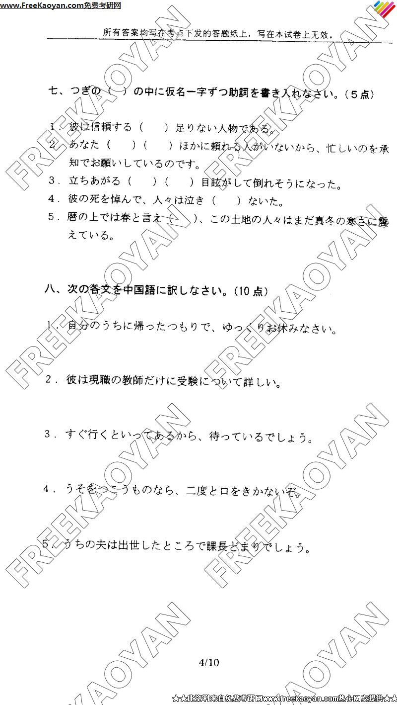 上海外国语大学2005年考研真题-综合考试(日语语言文学)(4)