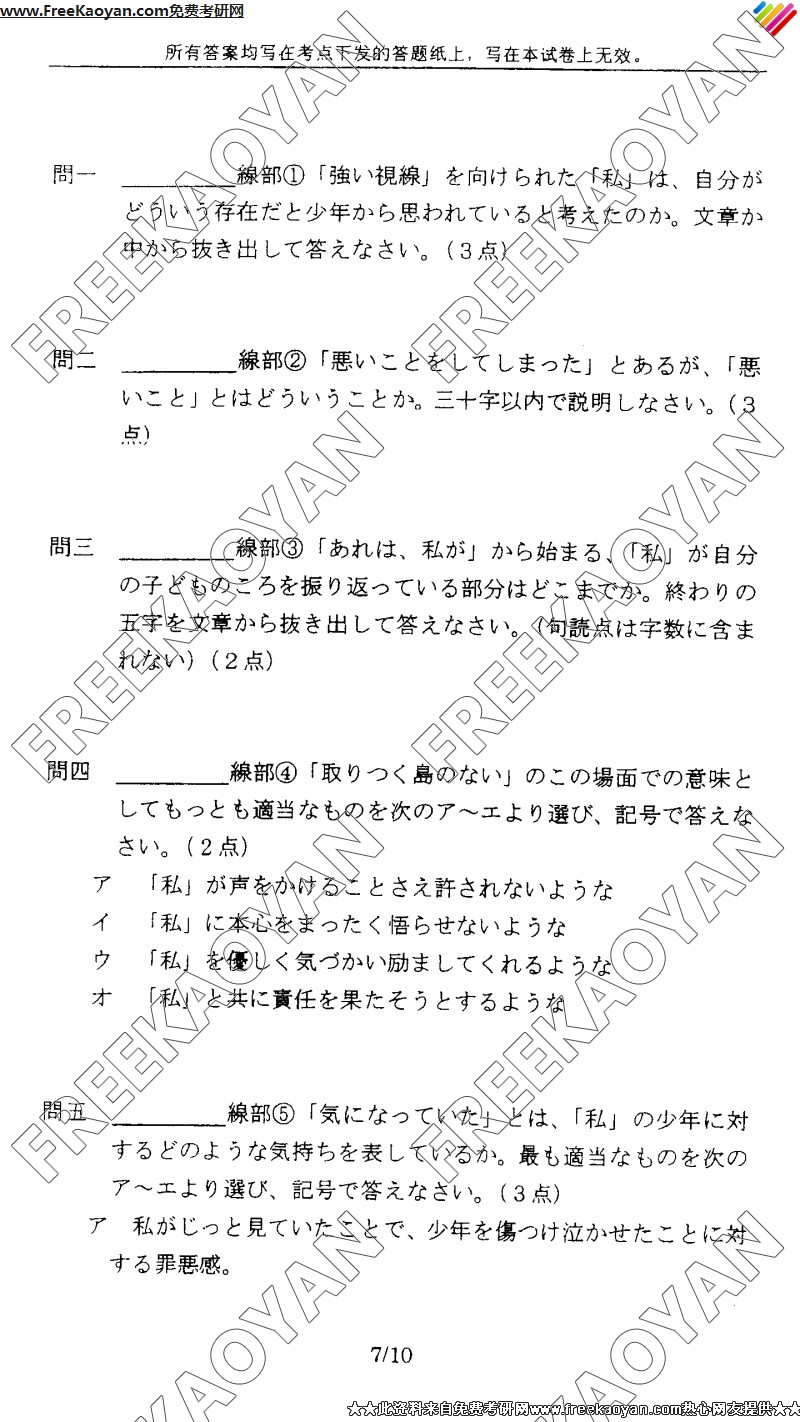 上海外国语大学2005年考研真题-综合考试(日语语言文学)(7)