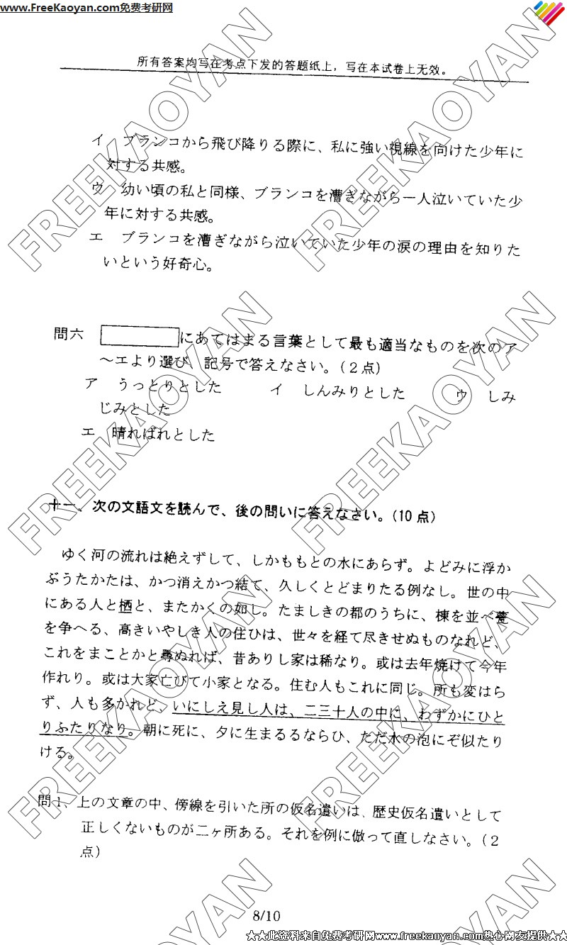 上海外国语大学2005年考研真题-综合考试(日语语言文学)(8)