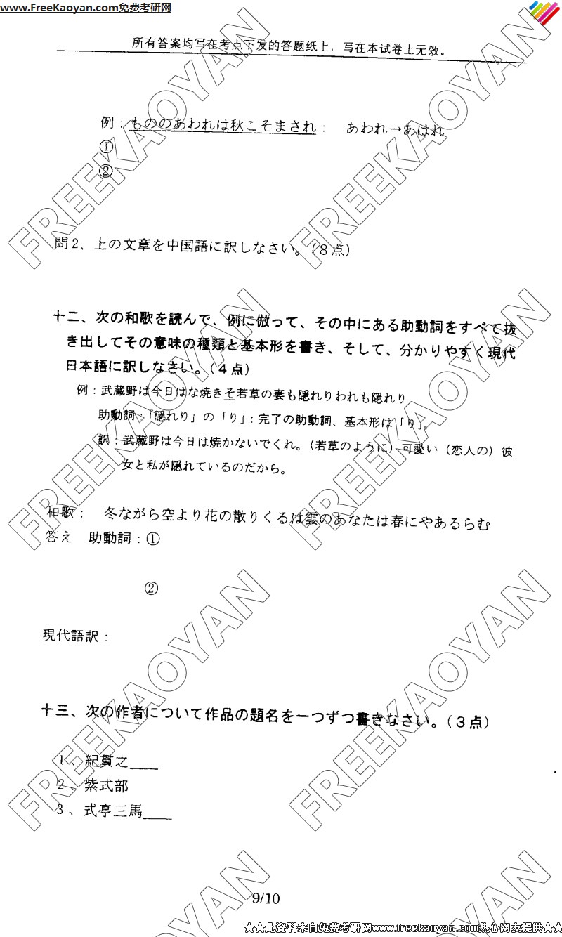 上海外国语大学2005年考研真题-综合考试(日语语言文学)(9)