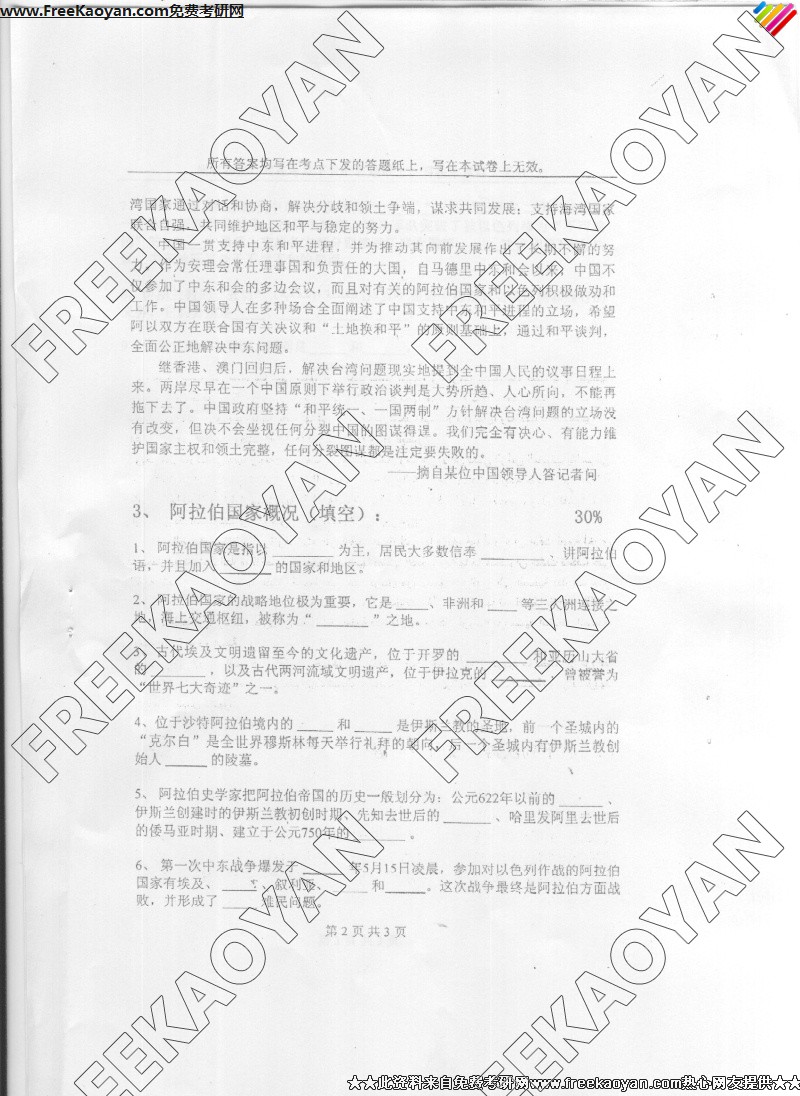 上海外国语大学2006年考研真题-阿拉伯国情概况与阿汉互译(2)