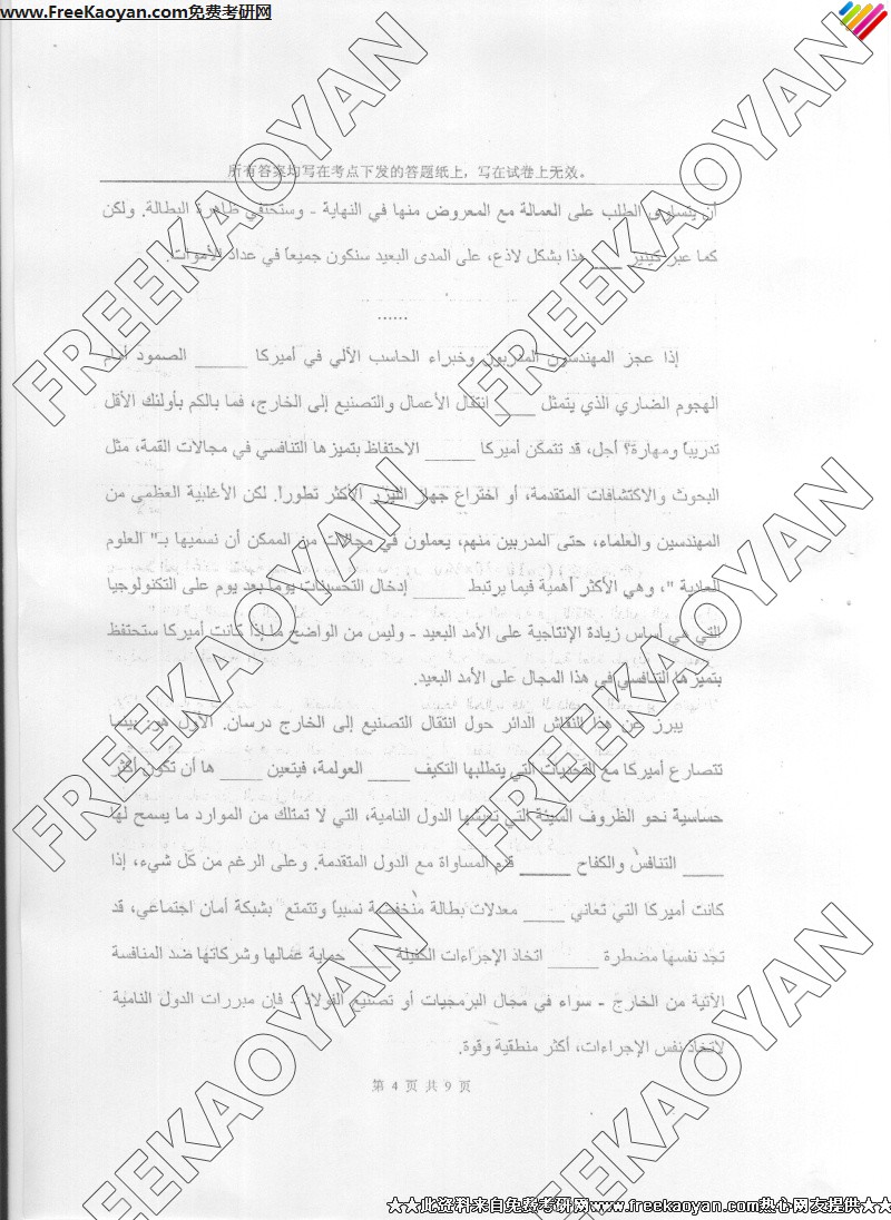 上海外国语大学2006年考研真题-阿拉伯语言综合(4)