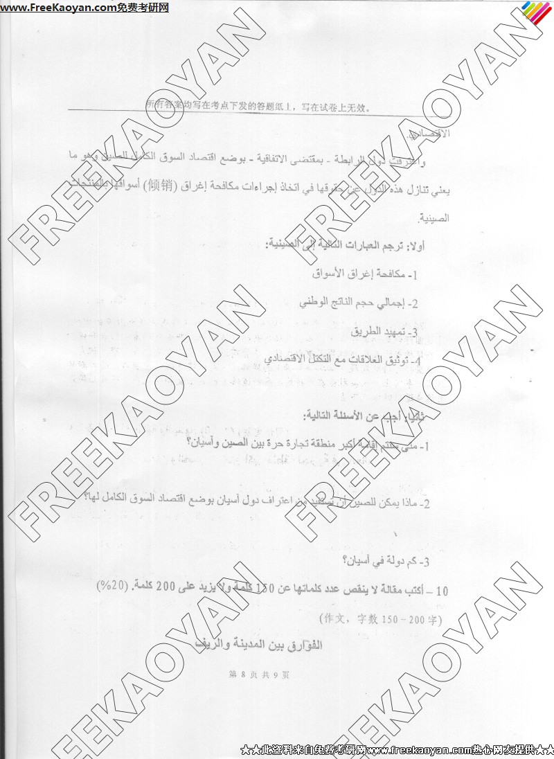上海外国语大学2006年考研真题-阿拉伯语言综合(8)