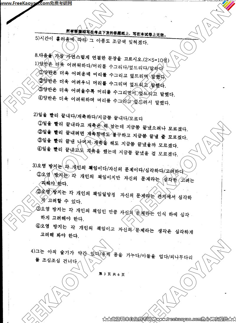 上海外国语大学2006年考研真题-朝鲜语综合(3)