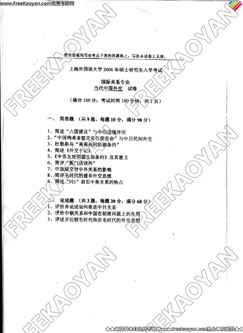 专业课考研经验 本站小编 FreeKaoyan 2018-01-23上海外国语大学2005年考研真题-战后国际关系