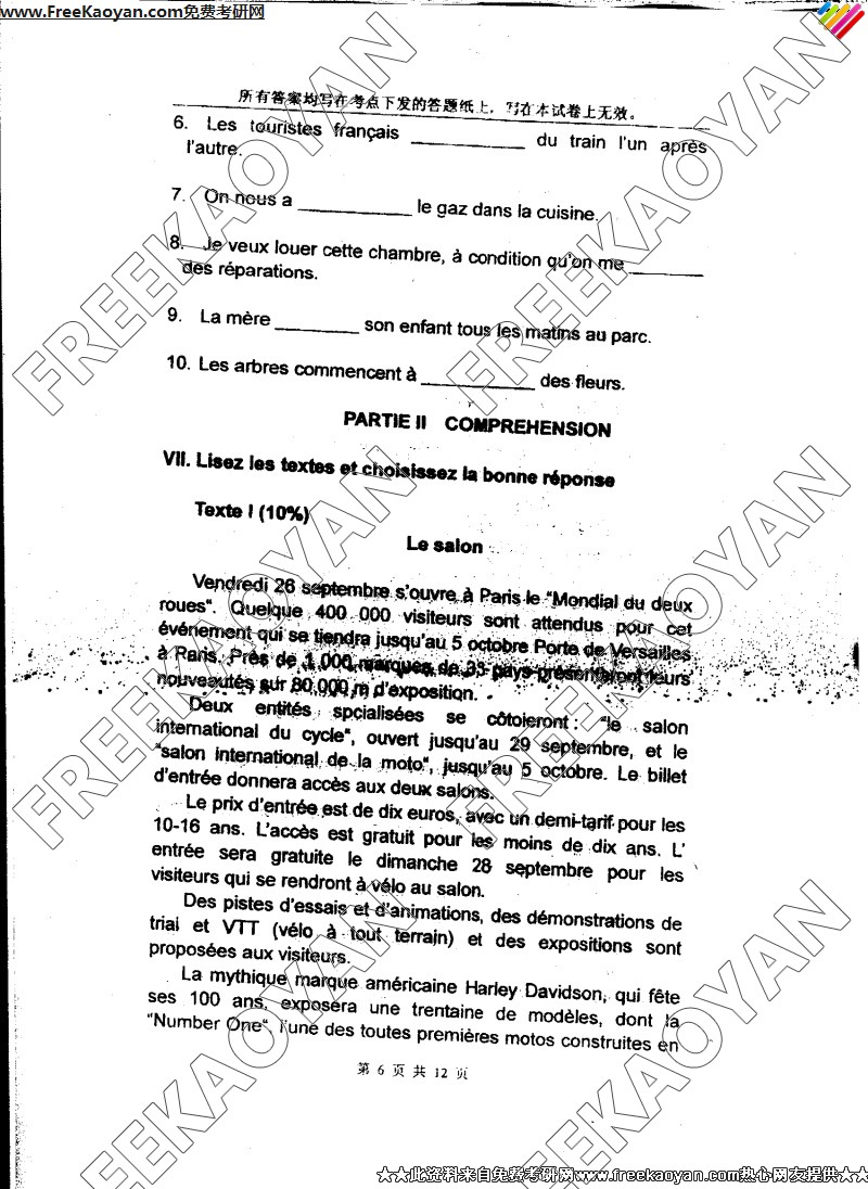 上海外国语大学2006年考研真题-法语二外(6)