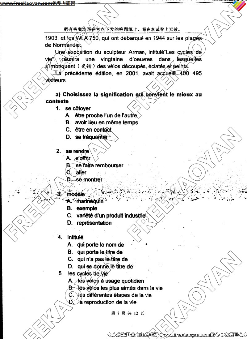 专业课考研经验 本站小编 FreeKaoyan 2018-01-23上海外国语大学2005年考研真题-综合考试(法语语言文学)