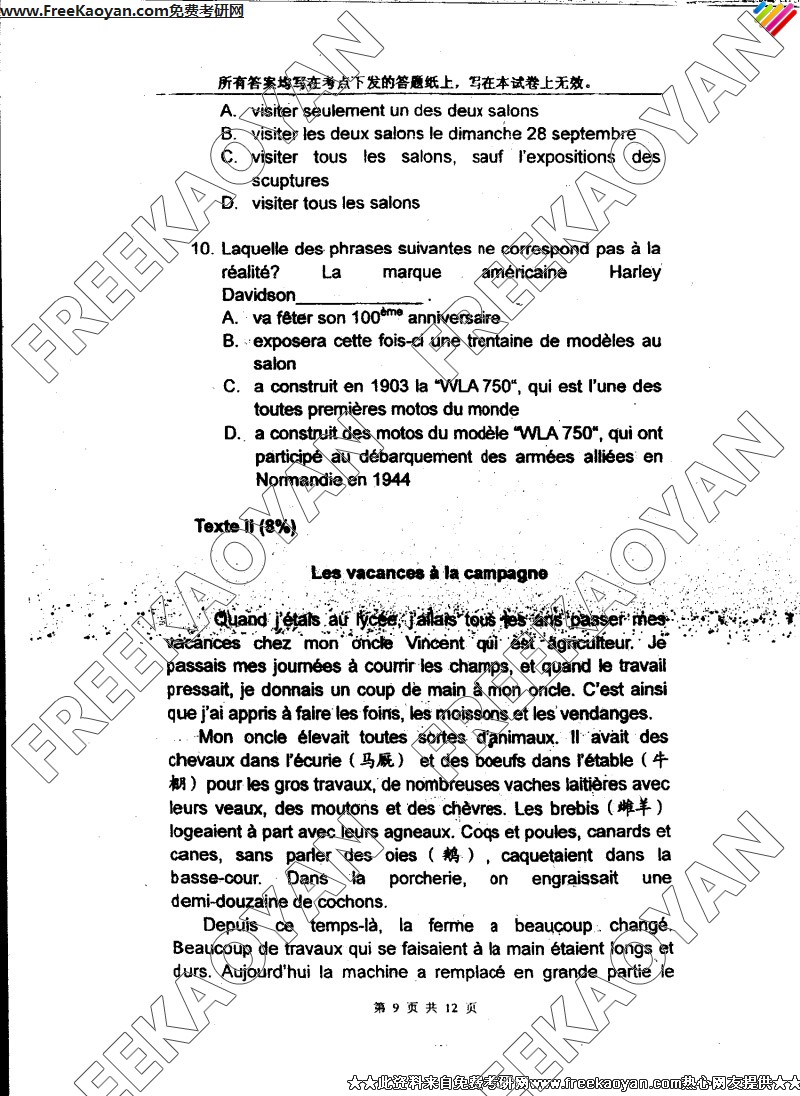 专业课考研经验 本站小编 FreeKaoyan 2018-01-23上海外国语大学2005年考研真题-综合考试(法语语言文学)