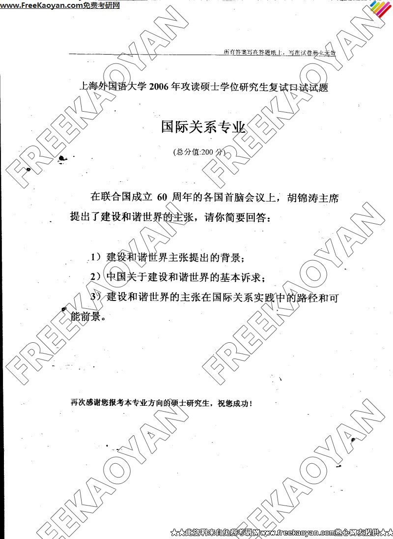 专业课考研经验 本站小编 FreeKaoyan 2018-01-23上海外国语大学2006年考研真题-当代中国外交