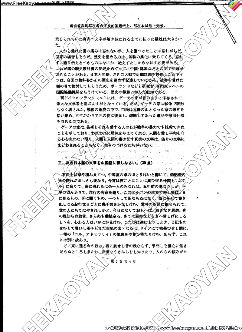 专业课考研经验 本站小编 FreeKaoyan 2018-01-23上海外国语大学2005年考研真题-综合考试(日语语言文学)