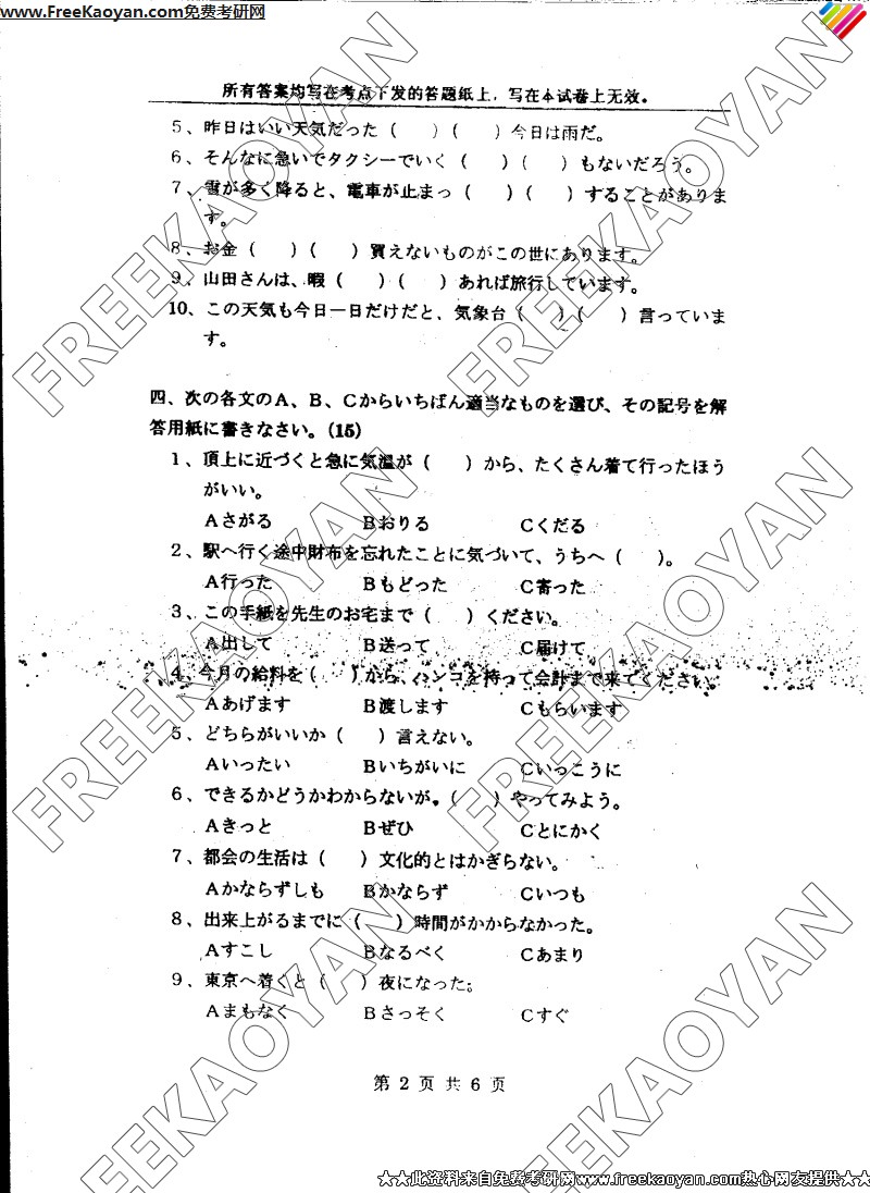 专业课考研经验 本站小编 FreeKaoyan 2018-01-23上海外国语大学2005年考研真题-综合考试(日语语言文学)