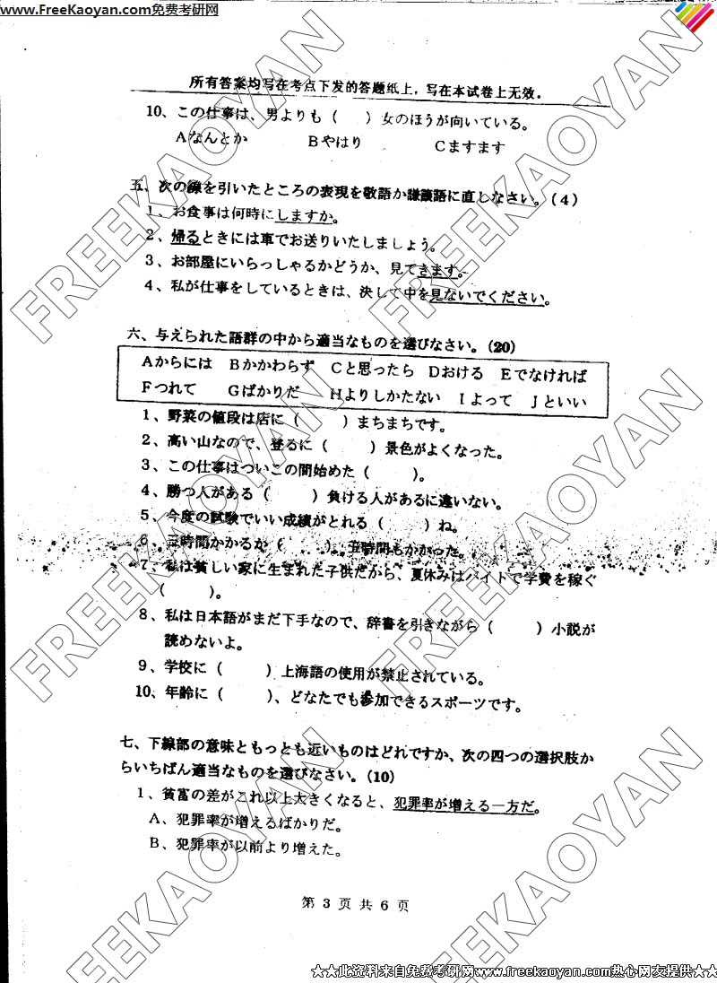 上海外国语大学2006年考研真题-日语二外(3)