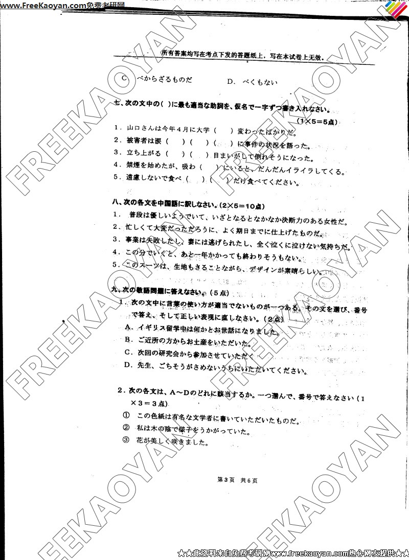 专业课考研经验 本站小编 FreeKaoyan 2018-01-23上海外国语大学2005年考研真题-综合考试(日语语言文学)