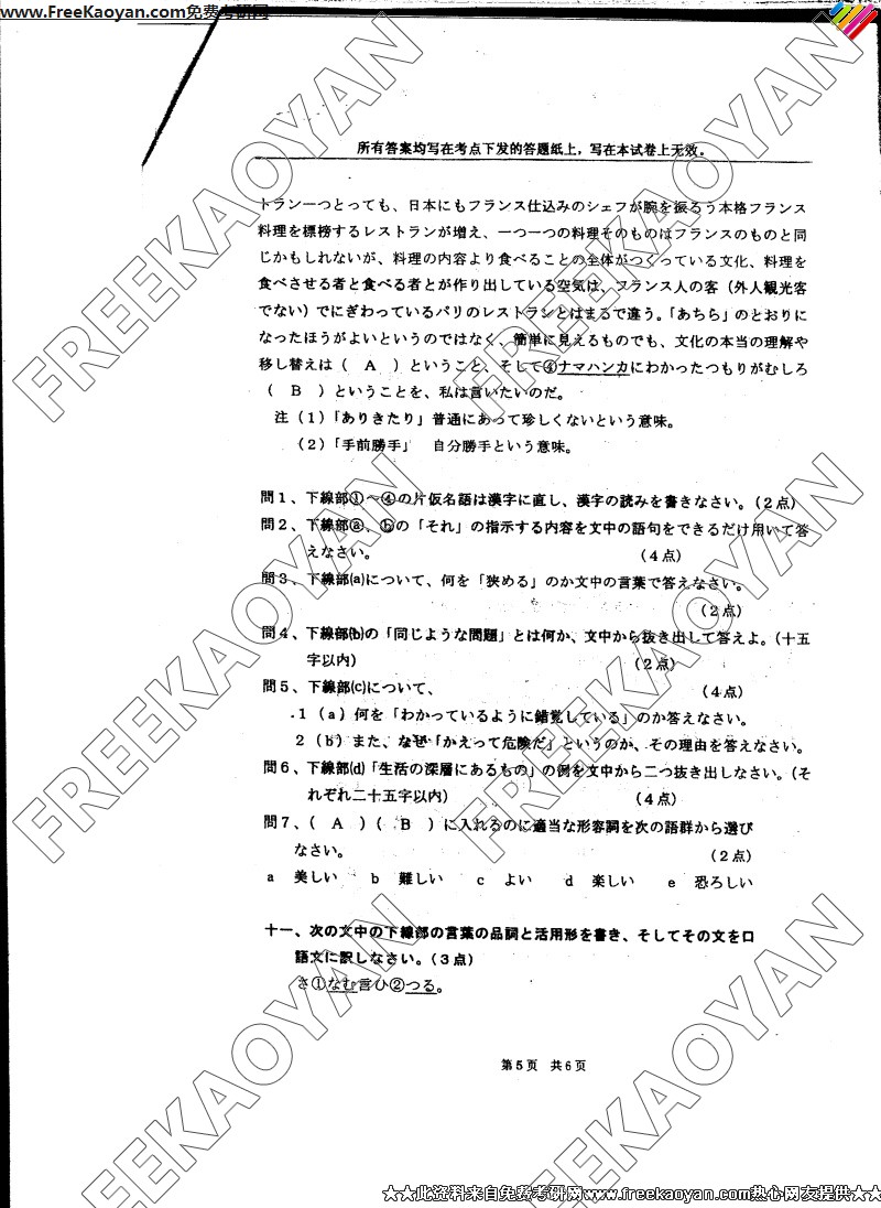 专业课考研经验 本站小编 FreeKaoyan 2018-01-23上海外国语大学2005年考研真题-综合考试(日语语言文学)