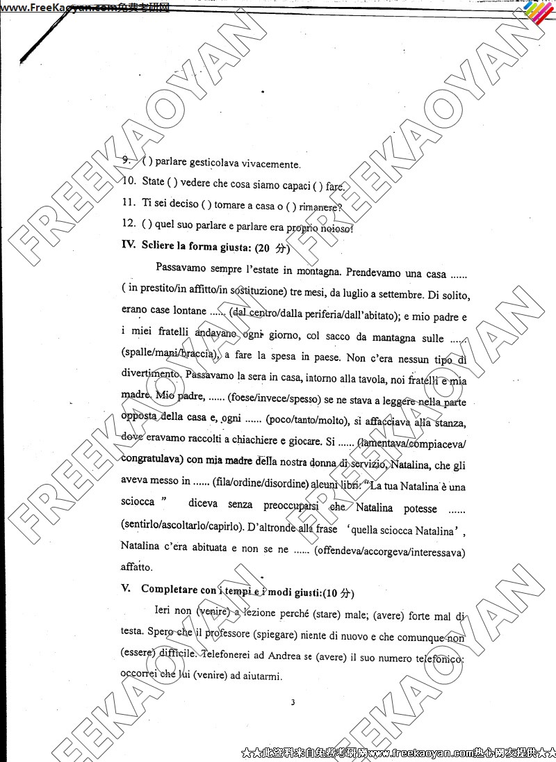 上海外国语大学2006年考研真题-意大利语二外(3)